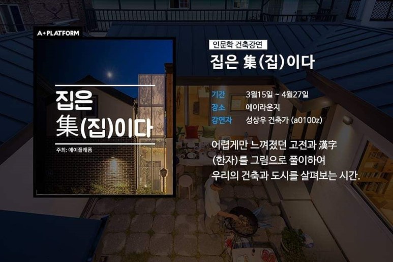 a0100z 의 성상우 소장이 진행하는 인문학 건축강연 <집은 集(집)이다>가 건축코워킹센터 에이라운지에서 진행되었습니다. 본 강연에서는 <집>의 어원을 통해 우리의 집과 마을의 본질을 살펴보는 시간을 가져보았습니다.