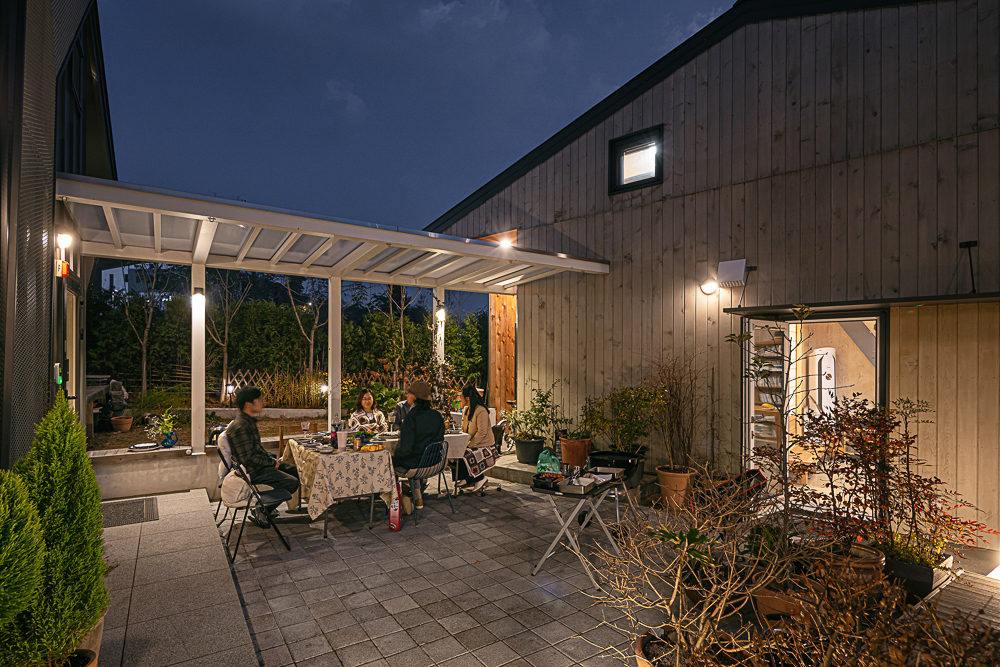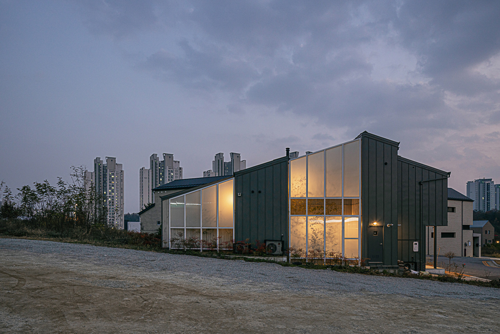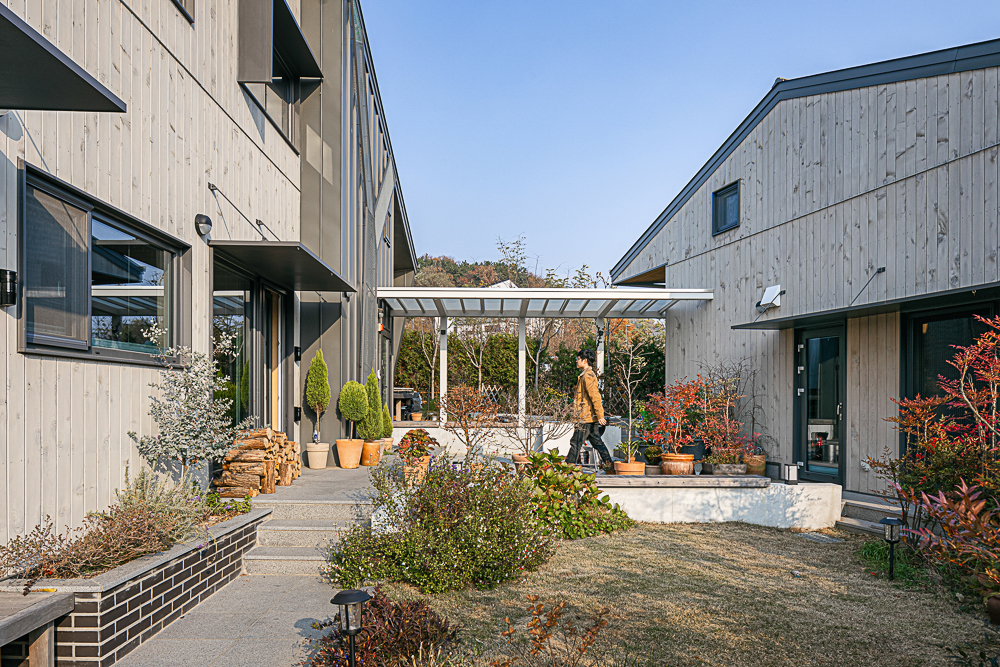 도롯가로 열린 마당을 통해 집은 둘로 나뉠 수도, 하나가 될 수도 있다. 1층과 1.5층, 2층으로 나뉘는 본채는 가족 공간과 개인공간이 적절히 섞인 생활공간이 되고, 별채는 작업공간이자 손님을 맞이하는 사랑방 역할을 한다.