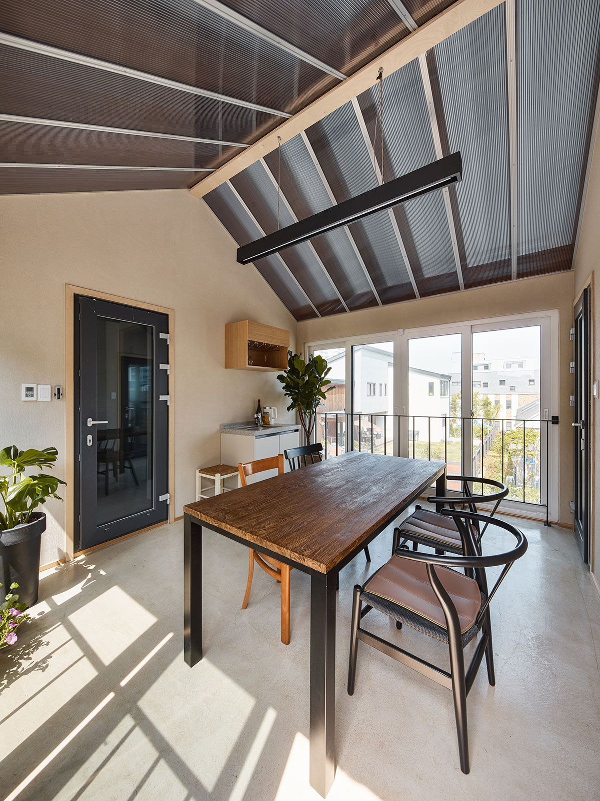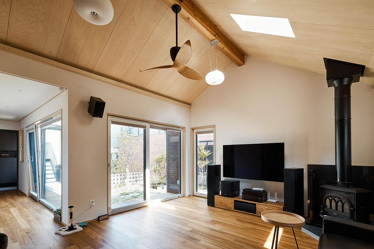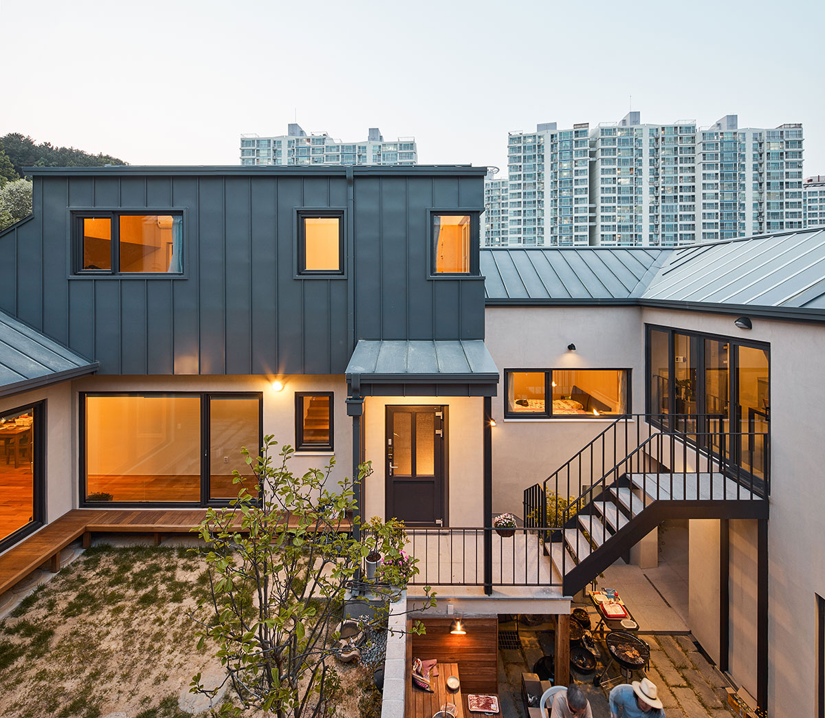 집은 전체적으로 ㄴ자와 ㅡ자의 연결이 합쳐진 ㄷ자형을 띠고 있다. 외관 디자인의 경우 너무 도드라지지 않고 주변과 잘 어울리는 재료로서 붉은 벽돌을 선택했으며, ㄷ 자형 건물의 각 모서리는 부드러운 곡선으로 마무리하여 날카롭게 보이지 않도록 하였다.