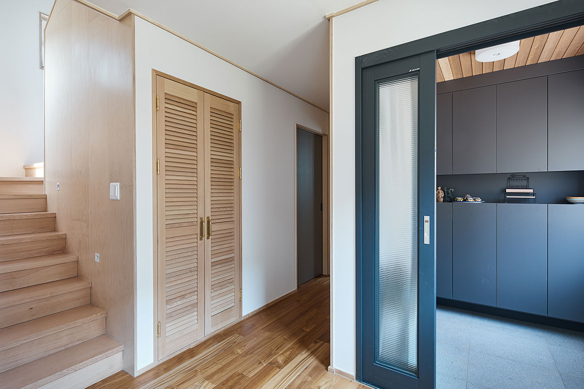 집은 전체적으로 ㄴ자와 ㅡ자의 연결이 합쳐진 ㄷ자형을 띠고 있다. 외관 디자인의 경우 너무 도드라지지 않고 주변과 잘 어울리는 재료로서 붉은 벽돌을 선택했으며, ㄷ 자형 건물의 각 모서리는 부드러운 곡선으로 마무리하여 날카롭게 보이지 않도록 하였다.